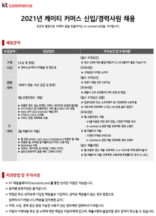 반면 KT commerce의 경우에는 아쉽게도 구매 직무만